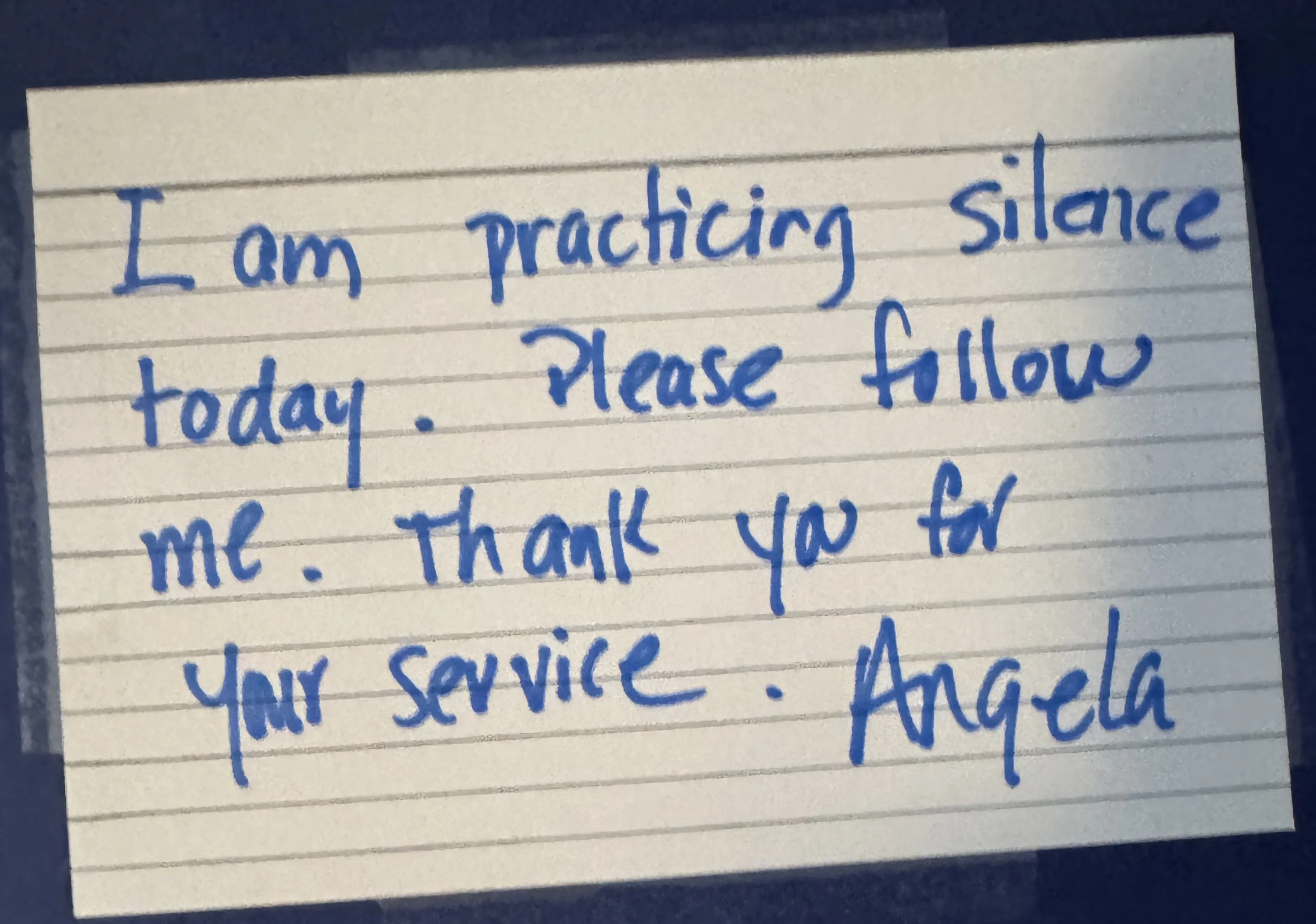 The sign for the delivery person when I’m practicing silence. Photo by Angela